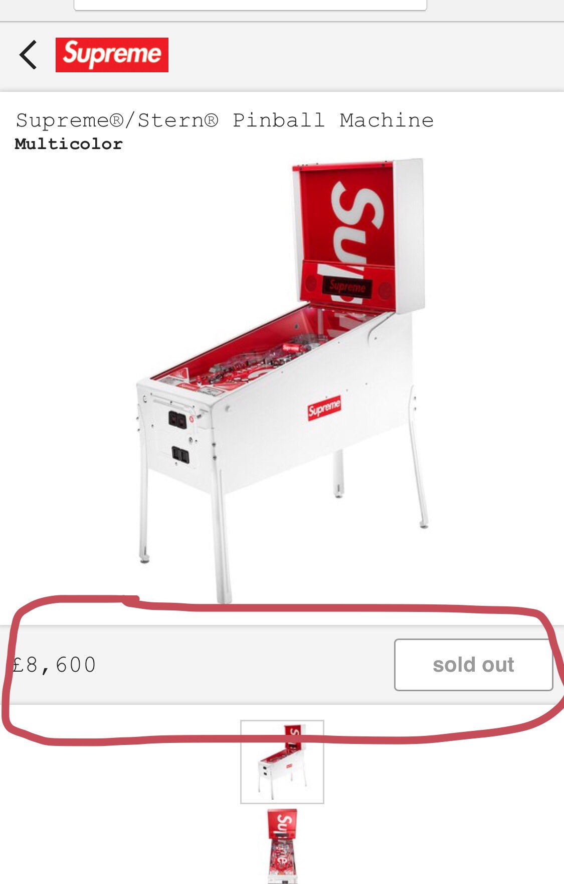 Rofl En Twitter 11 500 Supreme Pinball Machine Sold Out In What Must Have Been A Second I M Honestly Amazed And Intrigued By This Whole Niche Market Truly Incredible Https T Co 59xwvs4yws Twitter
